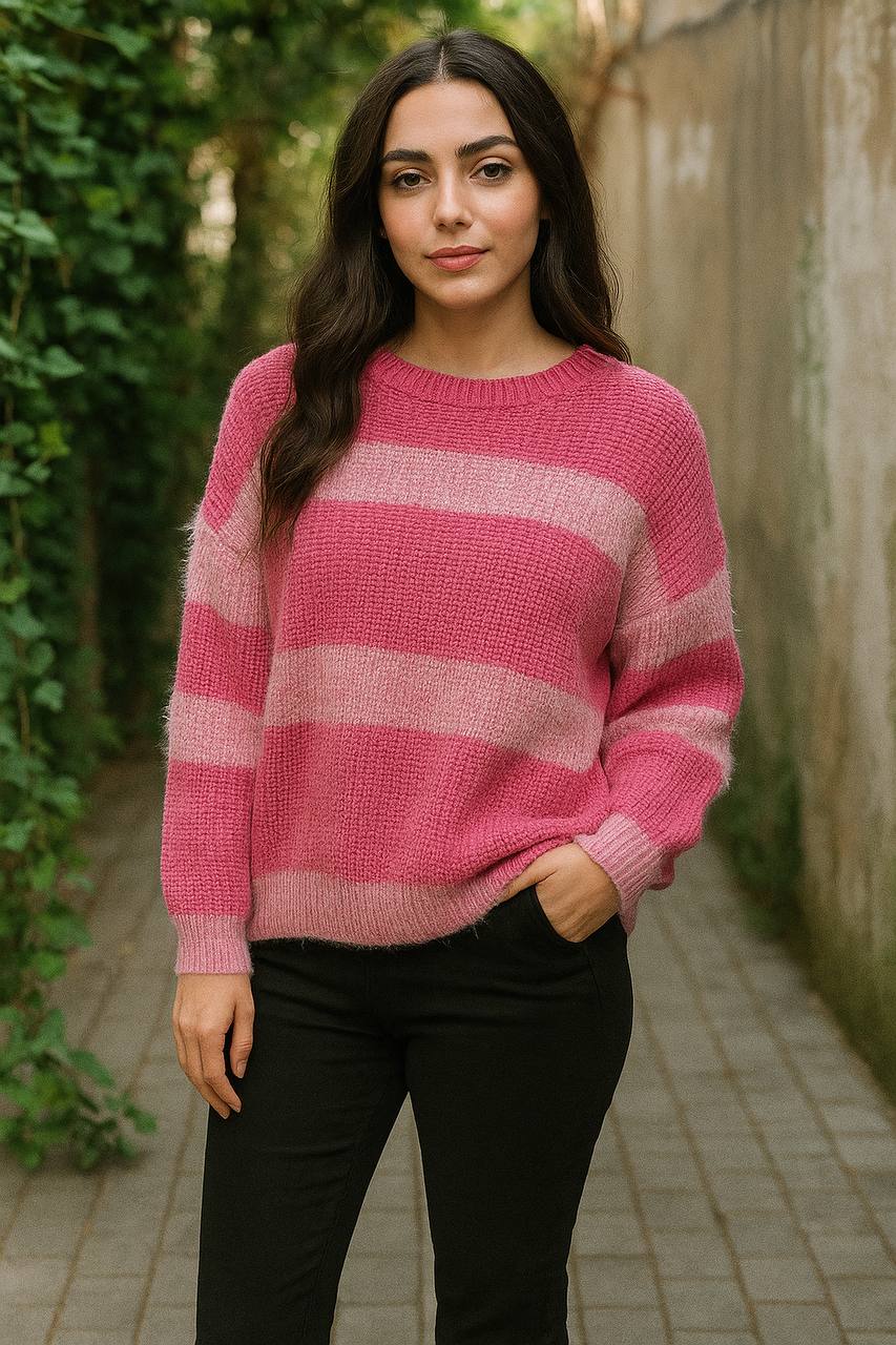 پلیور بافت راهراه زنانه (مخمل وارداتی) - فری سایز و فوقالعاده گرم برای زمستان
